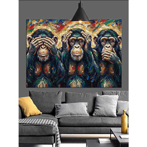 Üç Maymun Resmi Dekoratif Kanvas - Mdf Ahşap Tablo