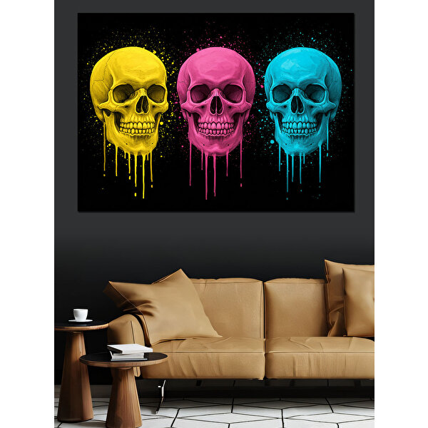 Üç Renkli Kuru Kafa Dekoratif Kanvas - Mdf Ahşap Tablo