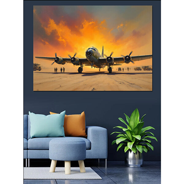Tablomega Uçak Pistte Çizimi Dekoratif Kanvas - Mdf Ahşap Tablo 100x140 cm