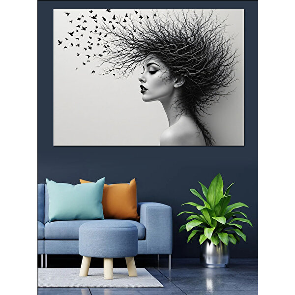Uçuşan Saçlı Kadın Dekoratif Kanvas - Mdf Ahşap Tablo