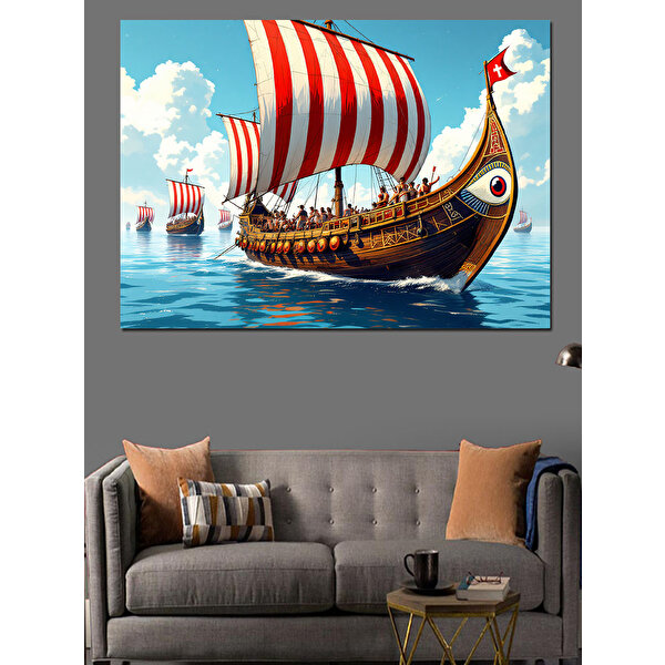 Tablomega Viking Gemisi Dekoratif Kanvas - Mdf Ahşap Tablo 70x100 cm