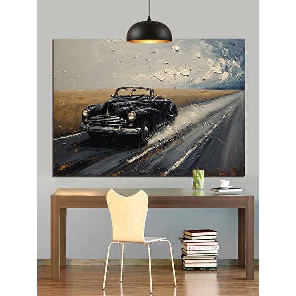 Tablomega Yağmur Altında Klasik Araba Dekoratif Kanvas - Mdf Ahşap Tablo 70x100 cm