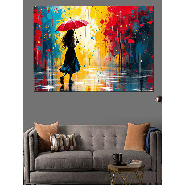 Yağmurda Kadın Dekoratif Kanvas - Mdf Ahşap Tablo