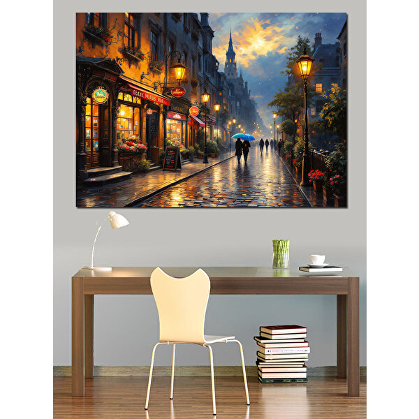Yağmurlu Akşam Şehir Manzarası Dekoratif Kanvas - Mdf Ahşap Tablo