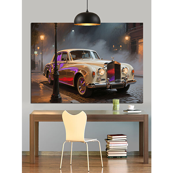 Yağmurlu Sokakta Klasik Araba Dekoratif Kanvas - Mdf Ahşap Tablo