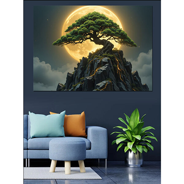 Tablomega Yalnız Dağ Tepesinde Ağaç Dekoratif Kanvas - Mdf Ahşap Tablo 50x70 cm