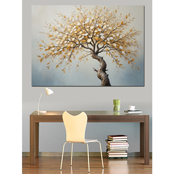 Tablomega Yalnız Sarı Yapraklı Ağaç Dekoratif Kanvas - Mdf Ahşap Tablo 100x140 cm