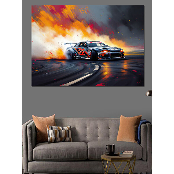 Yarışan Alevli Araba Dekoratif Kanvas - Mdf Ahşap Tablo