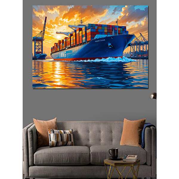 Tablomega Yük Gemisi Deniz Üstünde Dekoratif Kanvas - Mdf Ahşap Tablo 70x100 cm