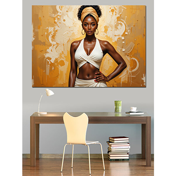 Tablomega Zarif Beyaz Elbiseli Kadın Dekoratif Kanvas - Mdf Ahşap Tablo 50x70 cm