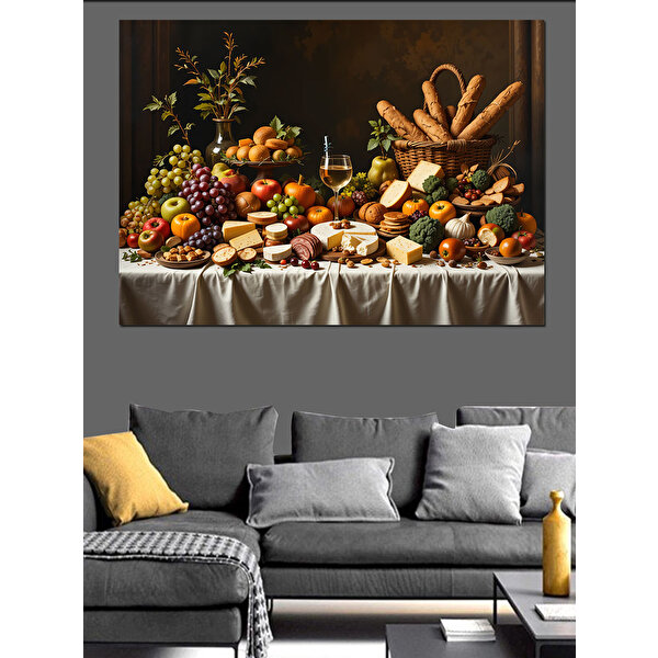 Tablomega Zengin Sofra Yiyecek Sunumu Dekoratif Kanvas - Mdf Ahşap Tablo 100x140 cm
