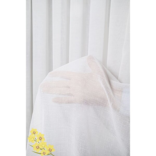 Taç Neoklasik Keten Tül Perde 1x3 Sık Pile - Kırışmaz Ütü Gerektirmez - Dökümlü Extra Gramajlı 120x265 cm