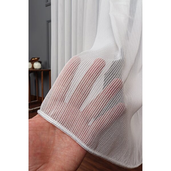 Taç Örme Çelik Dökümlü Tül Perde Ekstra Gramajlı Dökümlü 1x3 Sık Pile - Kırışmaz Ütü Gerektirmez 260x250 cm