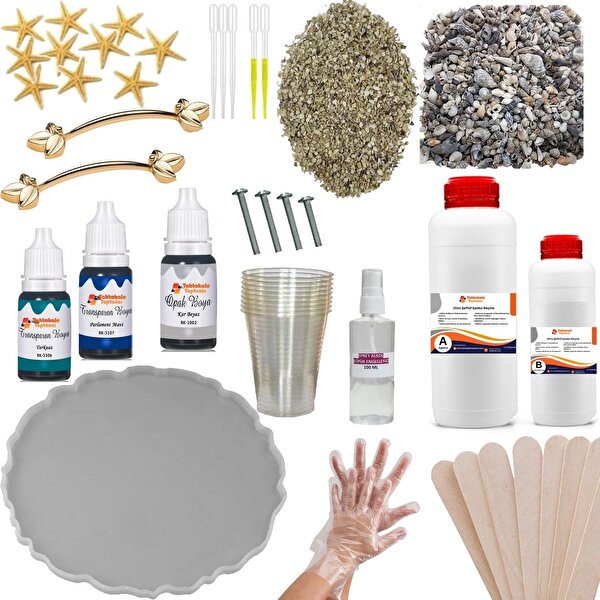 Epoksi Tepsi Yapım Seti 49 Parça – Deniz Efekti ve Okyanus Temalı Hobi KitiEpoksi sanatına ilgi duyanlar için özel olarak hazırlanan Epoksi Tepsi Yapım Seti (49 Parça) ile kendi el yapımı, şık ve estetik tepsilerinizi kolayca tasarlayın. Set içerisinde yer alan malzemeler sayesinde deniz ve okyanus efektli dekoratif ürünler yapabilir, evinizde sanatsal bir dokunuş yaratabilirsiniz.Neden Bu Seti Tercih Etmelisiniz?49 Parça Zengin İçerik: Epoksi reçine, silikon kalıp, karıştırma çubukları, eldivenler ve deniz efektini oluşturacak özel yardımcı malzemeler.Deniz & Okyanus Efekti: Dalgaları ve denizin doğal görünümünü tepsilerinize yansıtın.Hobi & Profesyonel Kullanım: Yeni başlayanlardan profesyonellere kadar herkes için uygundur.Evinize Şıklık Katın: Misafirlerinize sunum yaparken fark yaratacak, estetik ve modern tasarımlar oluşturun.Kimler İçin Uygun?Hobi olarak el işi ve sanatla ilgilenenlerKendi el yapımı ürünlerini satmak isteyen girişimcilerSevdiklerine özel ve anlamlı hediyeler yapmak isteyenlerBu set, hem yaratıcılığınızı ortaya çıkarmanızı sağlar hem de kişisel kullanım veya hediye için mükemmel bir seçimdir.Epoksi Tepsi Yapım Seti 49 Parça Deniz Efekti ve Okyanus Temalı Hobi Kiti ile kendi sanatsal dokunuşunuzu hemen keşfedin!Set İçeriği:750 GR Epoksi Reçine A+B (şeffaf ve yüksek dayanıklılık)1 Adet Silikon Tepsi Kalıbı 30 CM 1 CM derinlik2 Adet Kulp (1 Çift)4 Adet Kulp Vidası5 Adet Damlalık Pastör10 Adet Eldiven (5 Çift)5 Adet Karıştırma Çubuğu3 Adet 20 ML Boya (Mavi-Turkuaz -Beyaz)1 Paket 100 GR Natural Kabuk Kumu1 Paket 50 Gr Karışık Minik Deniz Kabuğu10 Adet Polyester Deniz Yıldızı1 Adet (100) CC Köpük Kesici Baloncuk Giderici Sprey Şişe5 Adet Plastik Bardak