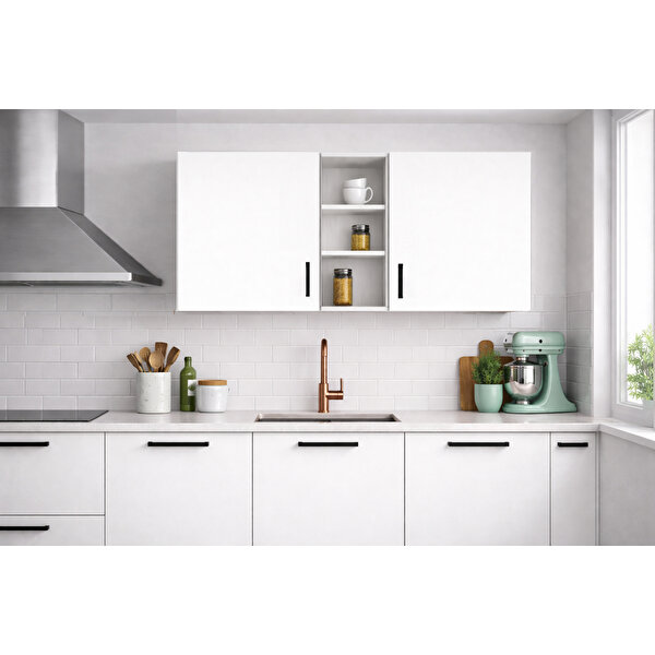 Tdesigno Katya Üst Modül - 150 Cm - Çok Amaçlı Dolap - Beyaz