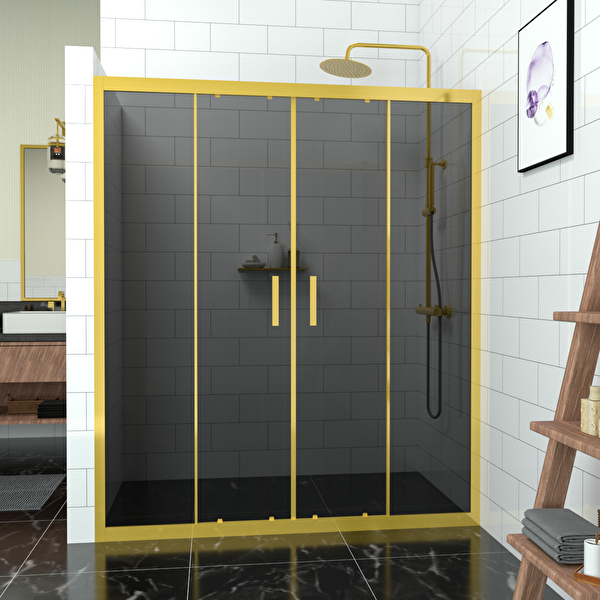 Teknoduş Gold Castor 6mm Füme Cam Orta Açılır 2 Sabit 2 Sürgü İki Duvar Arası Duşakabin 169 cm