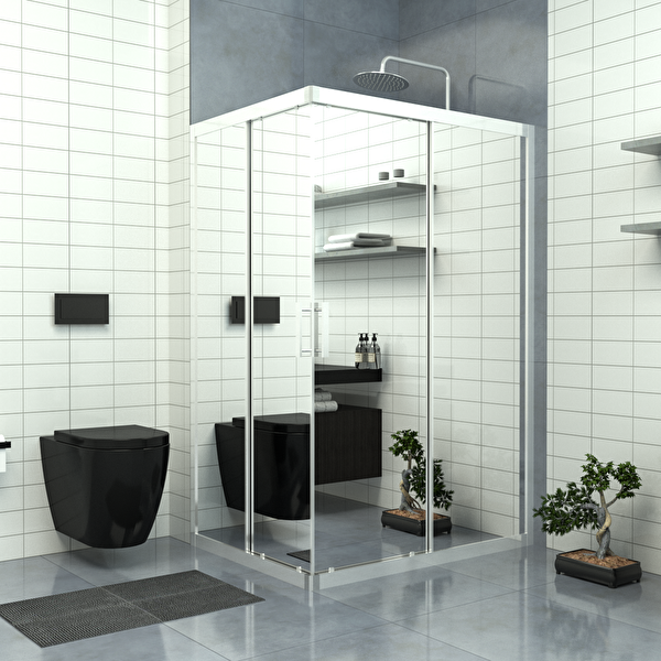 Teknoduş Si̇lver Ri̇gel 6mm Reflekte Cam Dikdörgen Duşakabin 90x120 cm