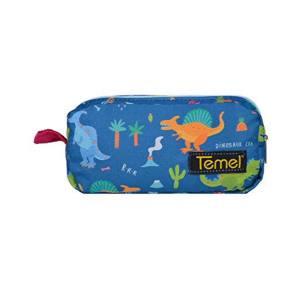 Temel Dinozor Desenli Lacivert Tek Gözlü Kalem Çantası