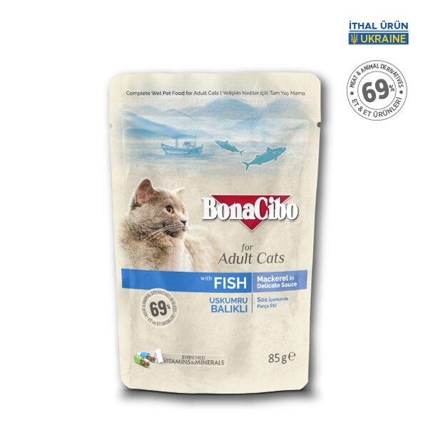 Temiz Pazar Bonacibo Soslu Uskumru-balıklı Pouch Yetişkin Kedi Yaş Maması Yetişkin Kediler Için Tam Yaş Mama