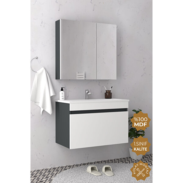 Teta Home Mersin 80 Cm Mdf Banyo Dolabı Seti Antrasit Beyaz
