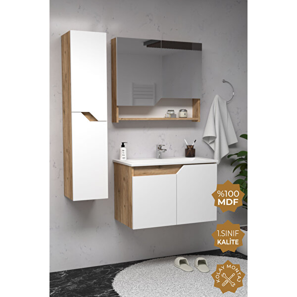 Teta Home Napoli 80 Cm Mdf Banyo Dolabı Seti + Boy Dolabı Atlantik Çam - Beyaz