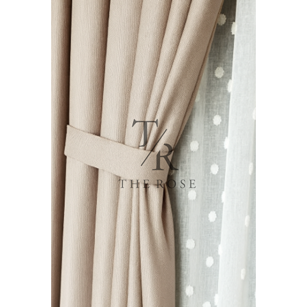 The Rose Keten Fon Perde, Bej, Pano Fon, Sık Pile, Kuşaklı, Düz Renk, Tek Kanat 100x270 cm