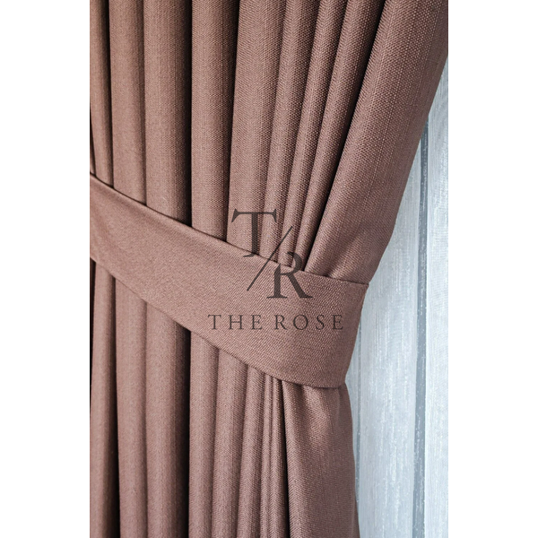 The Rose Keten Fon Perde, Koyu Kahve, Pano Fon, Sık Pile, Kuşaklı, Düz Renk, Tek Kanat 90x255 cm