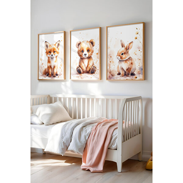 tonlarıyla huzurlu bir atmosfer oluşturuyor. Tilki, ayıcık ve tavşan figürleriyle çocukların hayal dünyasını genişleten bu özel tasarım, odalara doğallık ve estetik bir hava katıyor. Öne Çıkan Özellikler: Gerçek Ahşap Çerçeve – Şık ve uzun ömürlü. UV Baskı Teknolojisi – Canlı ve solmayan renkler. Kolay Montaj – Asma aparatları dahildir. Filigran Bilgilendirmesi – Ürün görsellerinde yer alan Tontilika yazısı yalnızca tanıtım amaçlıdır, gerçek üründe filigran bulunmamaktadır. Sade ve şık tasarımıyla bebek ve çocuk odalarına mükemmel bir uyum sağlayan bu Ahşap Çerçeveli 3'lü Tablo Seti, hem dekoratif hem de kaliteli bir seçimdir.
