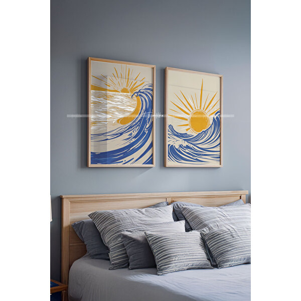 Tontilika Dalga Ve Güneş 2'li Ahşap Çerçeveli Tablo Seti-2 30x42 cm