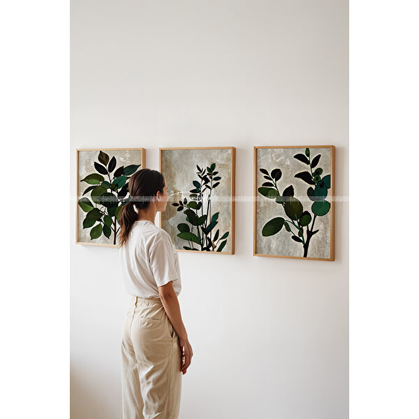 seti, evinize huzurlu bir atmosfer katacak. Minimalist tasarımı sayesinde her türlü dekorasyon stiliyle mükemmel uyum sağlar. Ürün Özellikleri: 3 Parçalı Tasarım: Doğanın farklı tonlarındaki yeşillikler bir araya getirilmiştir.Kaliteli Baskı: Yüksek çözünürlükte, canlı ve dayanıklı renkler.Ahşap Çerçeve: Doğal ahşap görünümüyle sıcak bir dokunuş sağlar.Kolay Montaj: Asma aparatları dahildir ve kurulumu oldukça kolaydır.Bu tablo seti, doğal ve estetik bir görünüm elde etmek isteyenler için ideal bir seçimdir. Oturma odası, yatak odası veya çalışma alanlarınızda rahatlatıcı bir atmosfer yaratmak için mükemmeldir.