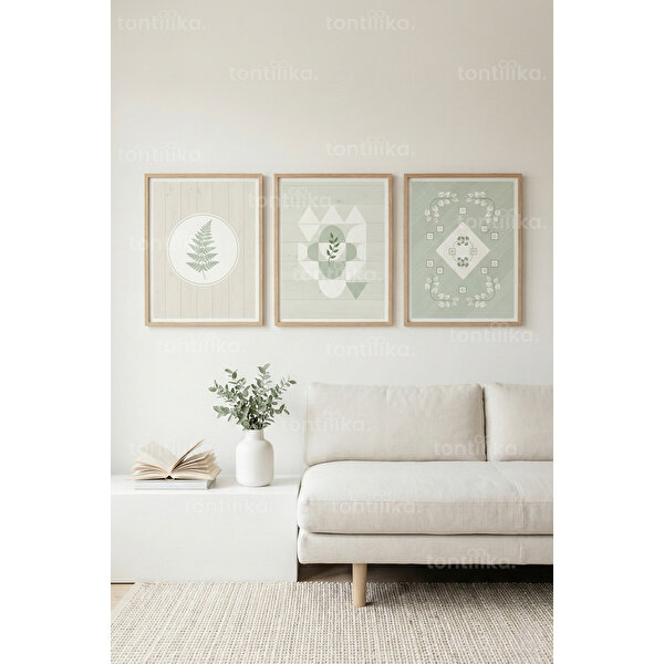 asyon anlayışının sade ve ferah çizgisini yansıtır. Dengeli kompozisyonu ve doğal renk paleti sayesinde mekânda sakin, düzenli ve estetik bir atmosfer oluşturur. Ürün Özellikleri:- 3’lü uyumlu ve bütüncül set tasarımı- İskandinav stilinde botanik ve geometrik desenler- Ahşap çerçeveli, hafif ve dayanıklı yapı- Uzun ömürlü, kaliteli baskı yüzeyi- Salon ve sade yaşam alanlarıyla uyumlu- Asmaya hazır şekilde gönderilir Ahşap çerçeveli olarak gönderilir.