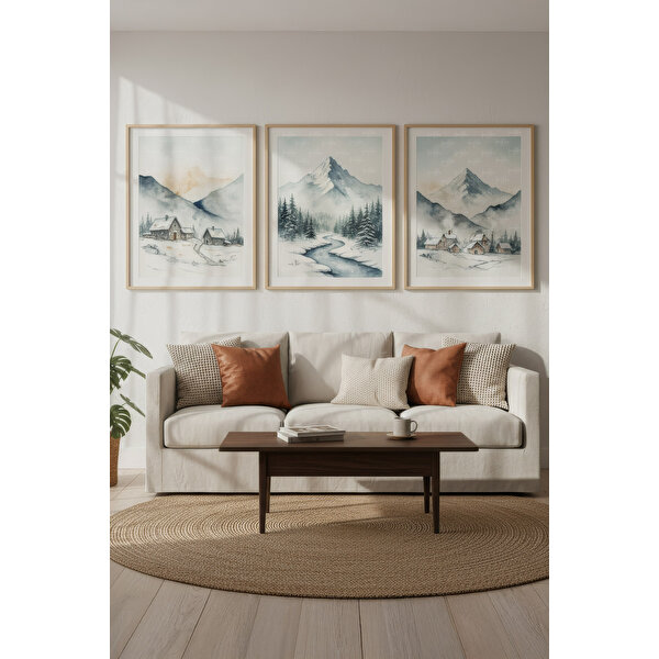 eti, salonunuza sıcak ve huzurlu bir atmosfer katıyor. Su desenli yumuşak renk geçişleriyle hazırlanan tablolar, hem rustik hem de modern dekorasyon tarzlarına uyum sağlar.   Ürün Özellikleri:  - 3 Parçalı Tasarım: Kış manzaralarıyla hazırlanmıştır.  - Ahşap Çerçeve: Dayanıklı, şık ve dekoratif çerçeve yapısı.  - Kaliteli Baskı: Canlı renkler, uzun ömürlü baskı teknolojisi.  - Kolay Montaj: Asma aparatları dahildir.   Ürünün diğer boyutları için mağazamızı ziyaret ediniz.