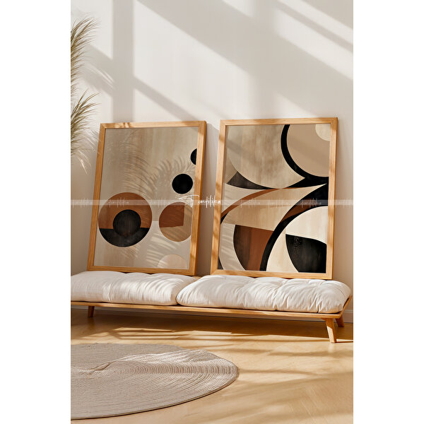 Tontilika Modern Soyut 2'li Ahşap Çerçeveli Tablo Seti-2 30x42 cm