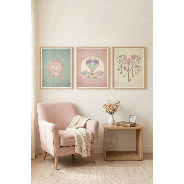 tel renk paleti ve yumuşak çizim diliyle mekâna sıcak ve huzurlu bir atmosfer kazandırır. Zarif detaylar ve dengeli kompozisyon, ferah ve samimi dekorasyon anlayışını tamamlar. Ürün Özellikleri:- 3’lü uyumlu ve bütüncül set tasarımı- Pastel tonlarda illüstratif semboller- Ahşap çerçeveli, hafif ve dayanıklı yapı- Uzun ömürlü, kaliteli baskı yüzeyi- Salon ve dinlendirici yaşam alanlarıyla uyumlu- Asmaya hazır şekilde gönderilir Ahşap çerçeveli olarak gönderilir.