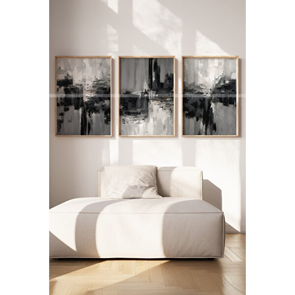 Tontilika Soyut Minimalizm 3 Parçalı Ahşap Çerçeveli Tablo Seti-2 30x42 cm