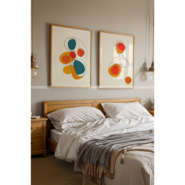 k için tasarlandı. Kırmızı, turuncu ve mavi tonlarının harmonisiyle oluşturulan zarif çizimler, yatak odası, oturma odası ya da çalışma alanlarınızda şık bir dekoratif unsur olarak öne çıkar. Ürün Özellikleri: 2 Parçalı Tasarım: Soyut formların modern yorumuyla dinamik bir görünüm.Ahşap Çerçeve: Doğal ve dayanıklı malzeme, uzun ömürlü kullanım.Canlı Renkler: Dekorasyonunuza enerji ve zarafet katar.Kolay Montaj: Asma aparatları dahil, pratik kurulum.Evinize sanatsal bir dokunuş eklemek ve modern bir atmosfer yaratmak için bu tablo setini hemen keşfedin!"