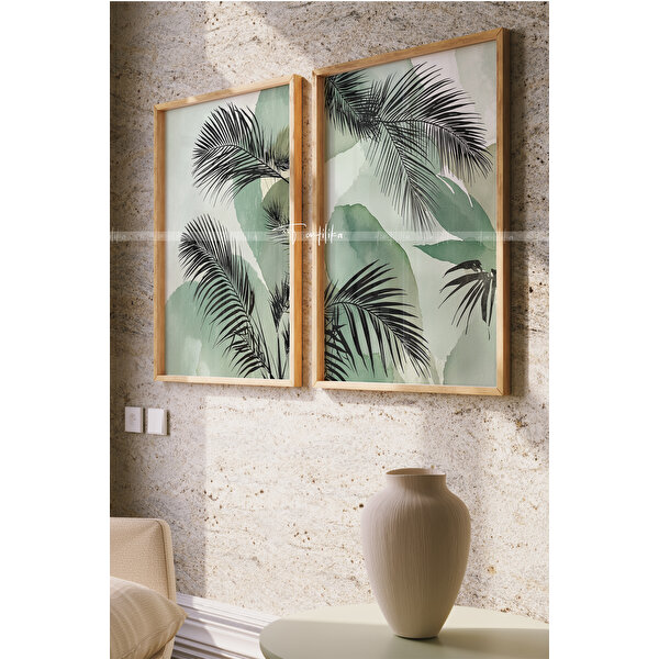 Tontilika Tropikal Yeşillik 2'li Ahşap Çerçeveli Tablo Seti-2 30x42 cm