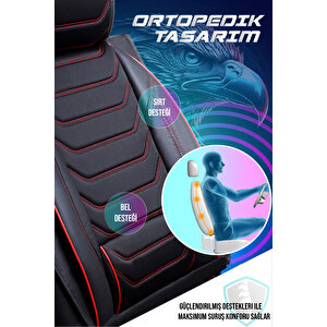 Toyota Corolla E210 2019-2024 Uyumlu Lüx Deri Oto Koltuk Kılıfı Ön Arka Takım Set Eagle Si̇yah Kirmizi Siyah-Kırmızı