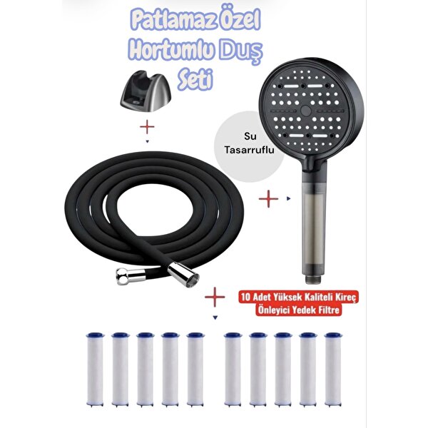 Lilium Serisi Patlamaz Duş Hortumu Ve Su Tasarruflu Duş Başlığı Ve 10 Adet Yedek Filtre