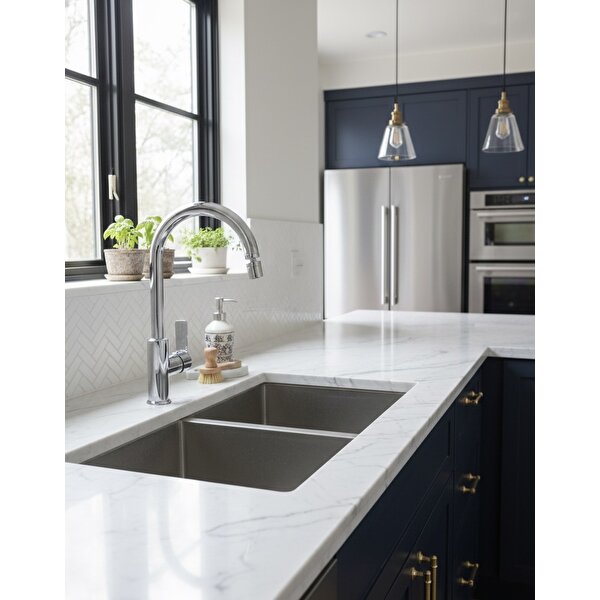 Tua Armatür Perlatörlü Oynar Başlıklı Krom Musluk Mutfak Eviye Bataryası Aç Kapa(360 Derece Dönen)