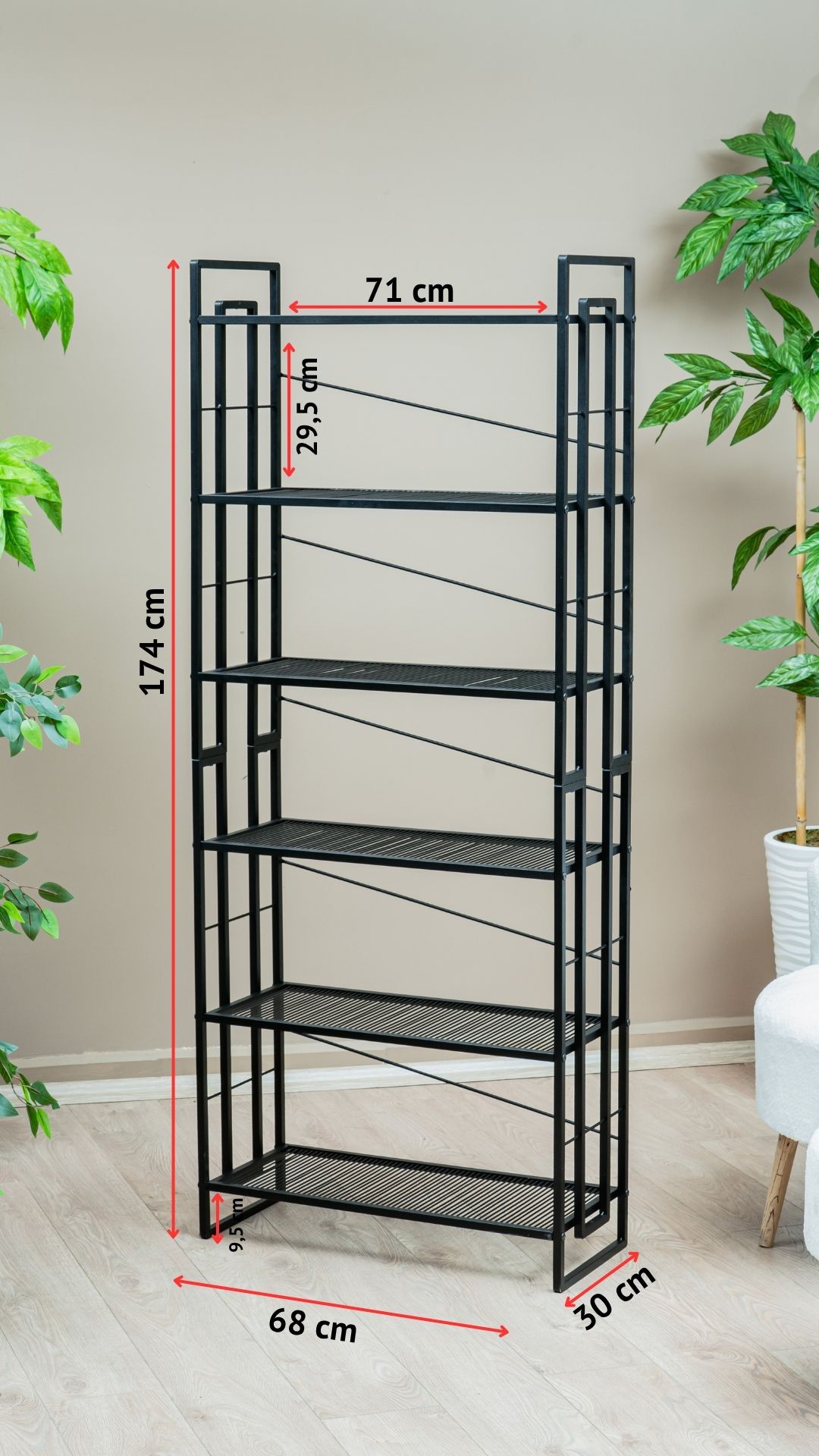 - Modern tasarımıyla evinizin dekorasyonuna şıklık katan 6 katlı metal kitaplık, dayanıklı metal gövdesi sayesinde uzun ömürlü kullanım sunar.; - hem işlevsellikleri hem de estetik görünümleriyle ev ve ofis dekorasyonunda sıkça tercih edilen mobilyalar arasında yer alır.; .; - Geniş rafları ile kitaplarınızdan aksesuarlarınıza kadar her türlü eşyanızı düzenli bir şekilde saklamanızı sağlar.; - Kontrollü üretim aşamaları, her bir parçanın kaliteli ve güvenilir olmasını sağlar.; - Ev mobilyalarınızla uyumlu modern stil sahibi yapısıyla mekanınıza çağdaş bir hava katar.; -- Kolay temizlenebilir yüzeyi sayesinde hijyenik bir ortam oluştururken estetik görünümünden ödün vermez.; - Üretim sürecinde, dayanıklılığı ve estetik tasarımı bir araya getiren bu kitaplık, uzun ömürlü kullanım su - hem estetik hem de fonksiyonel bir depolama çözümü sunar.; - Paketleme sürecinde, parçaların zarar görmemesi için koruyucu materyaller kullanılır ve her bir parça dikkatlice yerleştirilir.; - Ürün demonte olarak montaj malzemeleri ve kurulum şeması ile birlikte gönderilir.; - Elektrostatik toz boya ile fırınlanır paslanma yapmaz.;