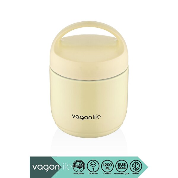 Vagonlife Bento 1200ml Lunchbox Yeni Koleksiyon 1 Kaseli 4-6saat Termos Özellikli Çelik Sefertası Yemek Kutusu Sarı