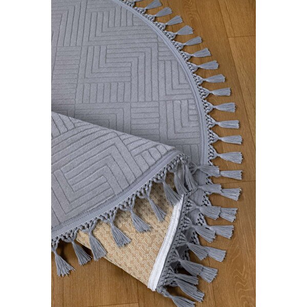 Valery Home Rölyef Aden Daire Gri Kaymaz Taban Kesme Halı Pon Pon 150x150 cm