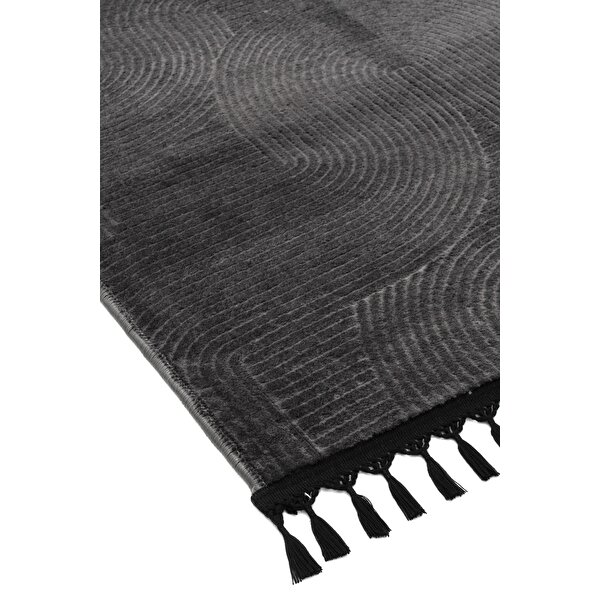 - Kaymaz taban özelliği sayesinde güvenli adımlar sunar, evinizdeki hareket özgürlüğünüzü artırır.; - Modern tema ve stil ile dekorasyonunuza şık bir dokunuş ekler, mekanınızda çağdaş bir görünüm sağlar.; - Polyester materyali sayesinde uzun ömürlü kullanım vaat ederken kolay temizlenebilir yapısıyla pratiklik sunar.; - Orta hav yüksekliği (6 - 12 mm), konforlu bir dokunuş hissiyatı sağlarken aynı zamanda dayanıklılığından ödün vermez.; - Örgü saçak detayı ile zenginleştirilmiş tasarımı, halının estetik değerini yükseltir ve görsel bir şölen oluşturur.; - Makine halısı üretim tekniğiyle üretilmiş olması, kalite standartlarına uygunluğu garanti eder; böylece her kullanımda beklentilerinizi karşılar.; - Dikdörtgen şekliyle farklı alanlara uyum sağlayarak salon veya oturma odası gibi geniş mekanlarda ideal boyutlarda yer bulur.