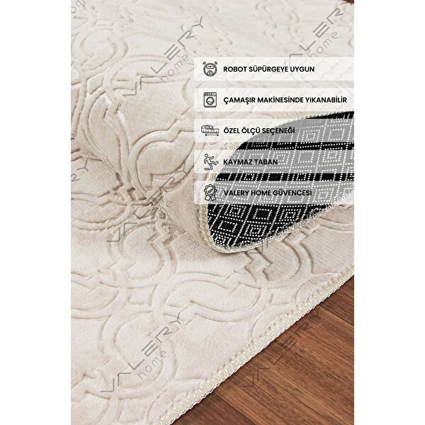 Valery Home Vl Yıkanabilir Kaymaz Tabanlı Violin Embos Kesme Rulo Halı Yolluk Krem Z1002b 100x150 cm