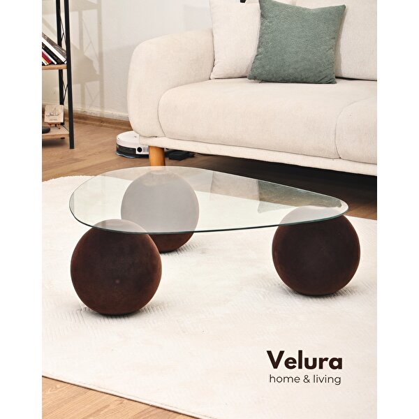 Velura Home Modern Orta Sehpa & Küre Sehpa & Top Sehpa & Şeffaf Üçgen Cam & Flok (kadifemsi Top Sehpa)