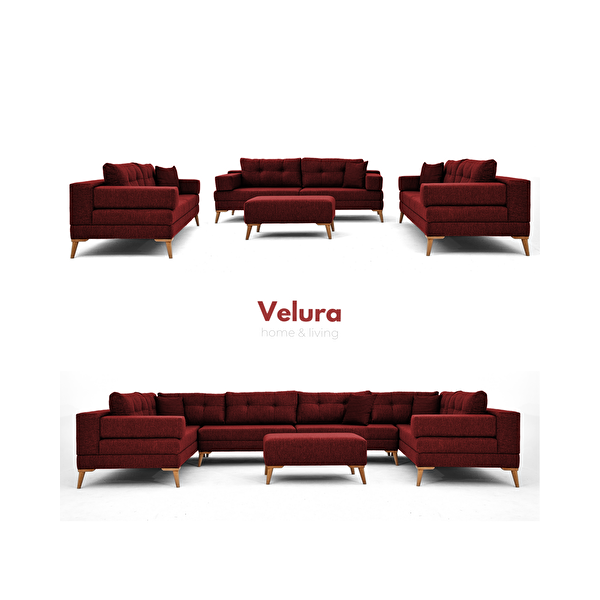 Velura Home Zeri Modüler Yataklı 3 Adet Üçlü Kanepe & 3'lü Koltuk (3+3+3) - Kırmızı