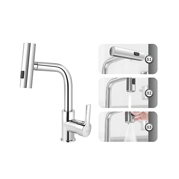 Isı ve debi ayarlı özel kartuş• Döner borulu• Yerinden çıkarılabilen spiralli 3 fonksiyonlu başlık• İdeal çalışma basıncı 3-4 Bar• Tesisatta oluşabilecek hertürlü kirliliğin armatüre zararını önlemek için ürünle birlikte filtreli ara musluk kullanılması tavsiye edilir