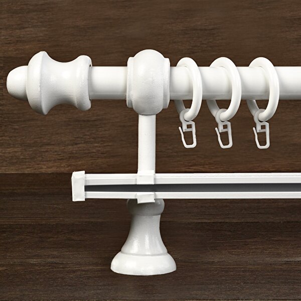 Venti Perde Beyaz Ahşap Rustik Raylı Perde Askısı 290 cm