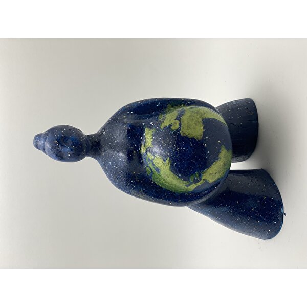 Modern tasarımıyla ev ve ofis dekorasyonunuza şık bir dokunuş katar; Dünya desenli kadın biblo 18 cm uzunluk, 13 cm genişliğindedir